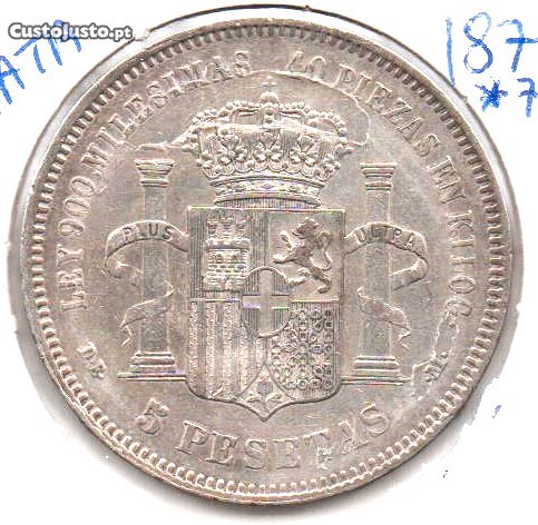 Preço: 115 €Espanha - 5 Pesetas 1871*74 - bela prata