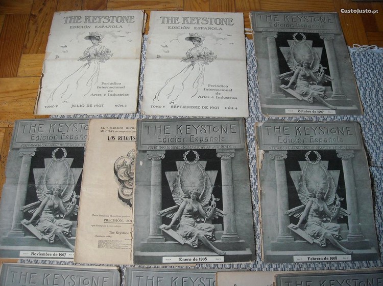 Conjunto de fasciculos muito interessantes da edição espanhola da "The Keystone" Jornal Internacional de Artes e Indústrias, com novidades tecnologicas da epoca, invenções, etc. Com excepção de 2 capas estão todos em muito bom estado de conservação.