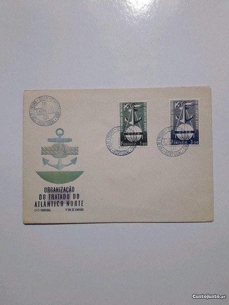 Vendo sobrescrito de primeiro dia com série completa da emissão de selos de Portugal NATO/3 Aniversário do Tratado do Atlântico Norte, de 1952