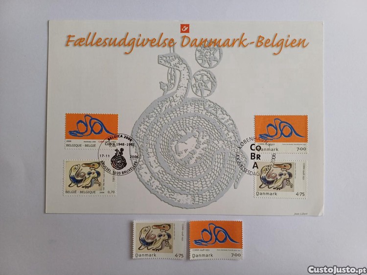 Filatelia - Emissão conjunta Bélgica-Dinamarca, Cobra, 2006