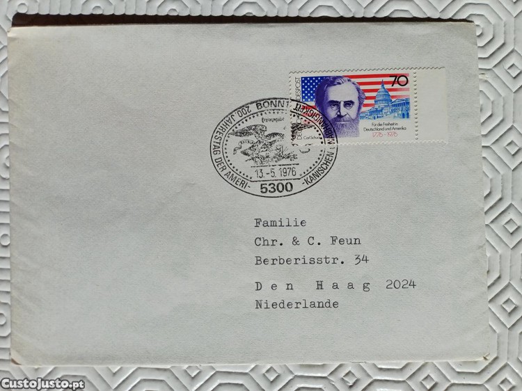 Envelope circulado de Rinteln para Den Haag na Holanda, com carimbo de 1 dia de Bonna de 13-5-1976