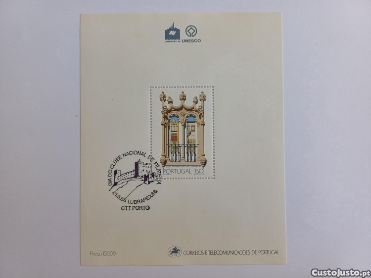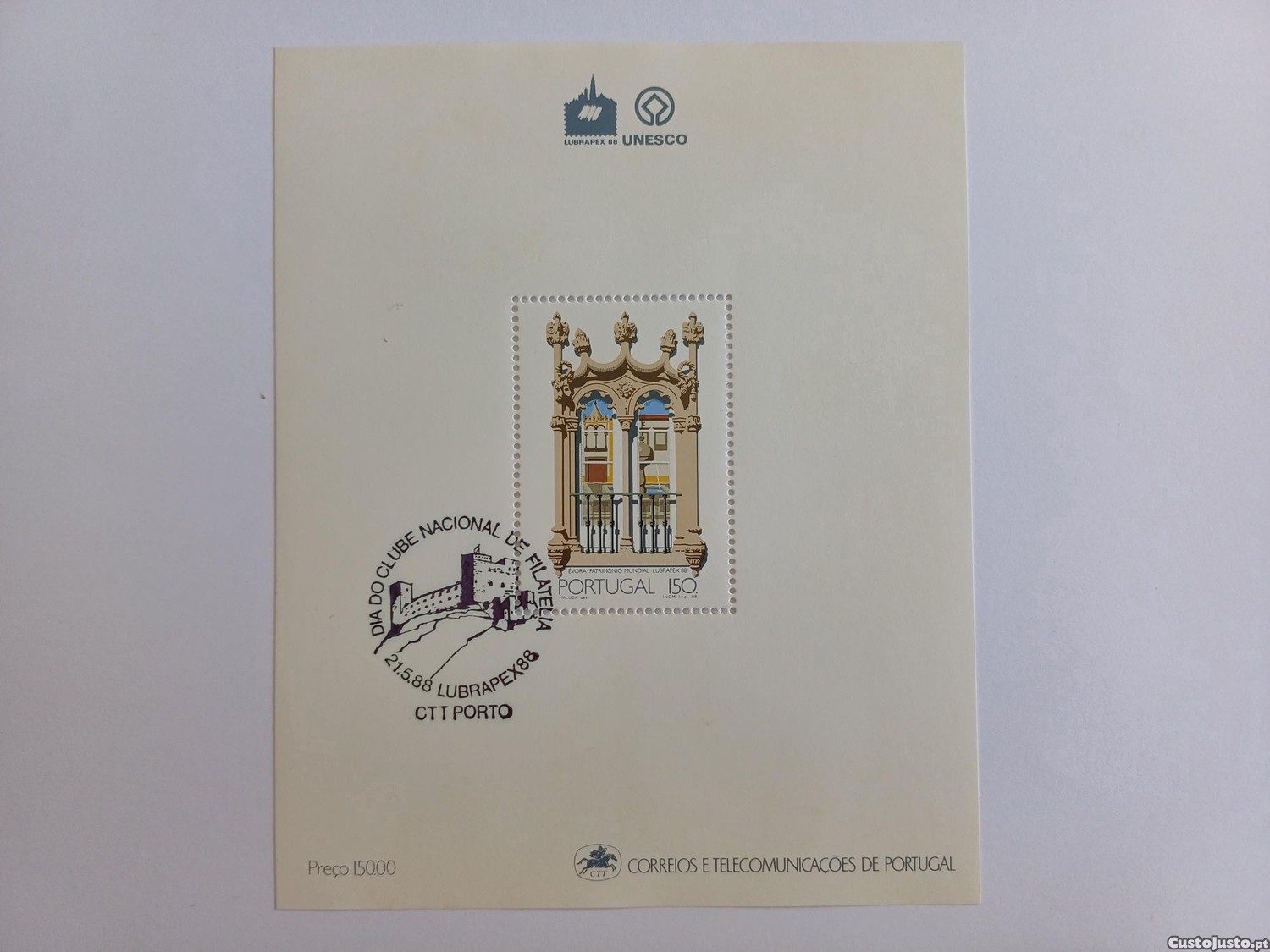 Preço: 5 €Filatelia - Portugal Bloco Lubrapex 88, com carimbo da Lubrapex, Porto
