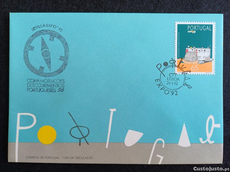 Filatelia - Portugal FDC Expo 92Sevilha, com carimbo do pavilhão de Portugal, 1992