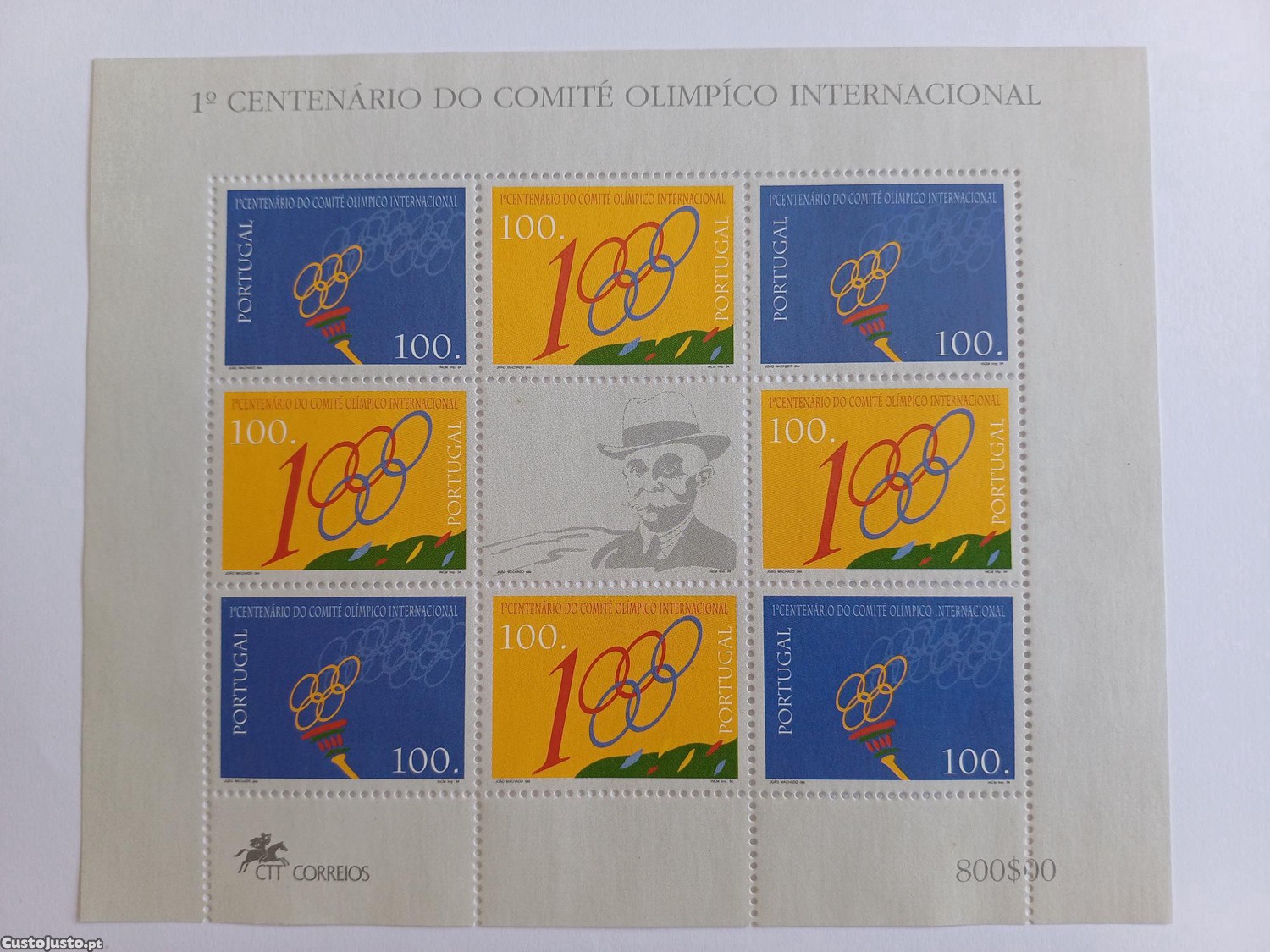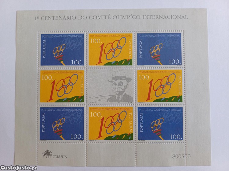 Preço: 2 €Filatelia - Portugal Folha miniatura 1º Centenário do Comité Olímpico Internacional, 1994
