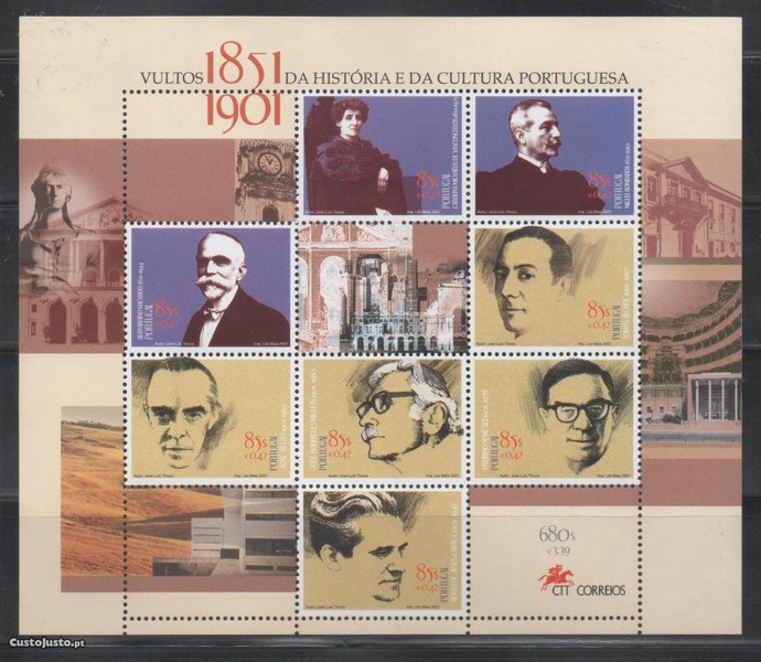 Preço: 3 €Folha Miniatura 15 Vultos Cultura Portuguesa. Nova