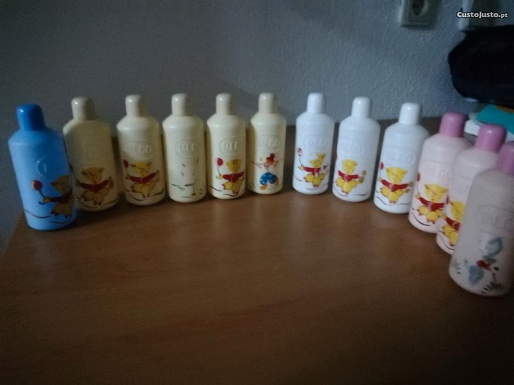 12 Frascos de talco antigos , com desenhos em fantasia.