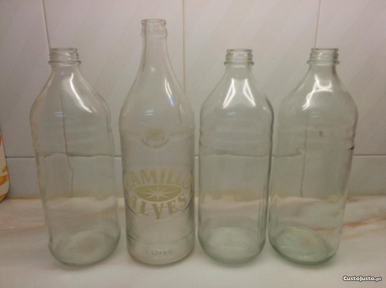 4 garrafas antigas de 1 Litro, uma delas pirogravada (Camillo Alves)