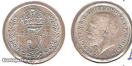 Grã-Bretanha - 3 Pence 1919 - soberba prata