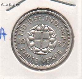 Grã-Bretanha - 3 Pence 1937 - soberba prata