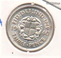 Grã Bretanha - 3 Pence 1940 - soberba prata