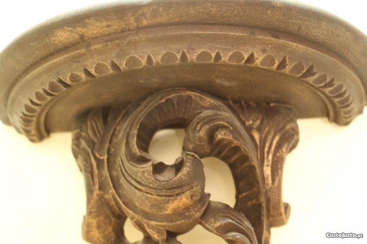 Peça muito trabalhada em bloco de madeira maciça, a pintura tem veios dourados