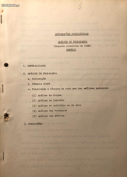 Preço: 10 €Informações Psicológicas - Análise de Propaganda segundo elementos do IAEM