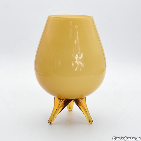 Preço: 80 €Jarra em vidro opalino amarelo com 3 pés