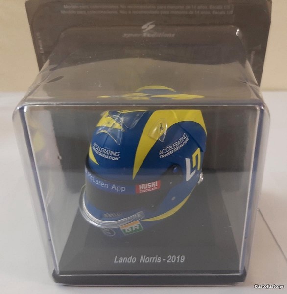 Capacete na escala 1:5 da marca Spark, do piloto de Fórmula 1 Lando Norris, do ano de 2019 na equipa McLaren. Novo e na embalagem original.