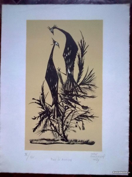 Preço: 300 €Litografia de Jorge Barradas Pássaros NOVO PREÇO