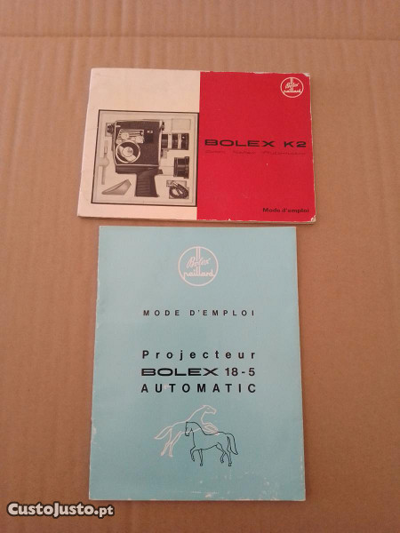 Livros de instruções originais das antigas e famosas máquinas de filmagem e projecção Paillard-Bolex, fabricadas na Suiça nos anos 60/70. Um dos livros diz respeito à máquina de filmar Bolex K2 e o outro à máquina de projectar Bolex 18-5 Automatic. Estão ambos em bom estado. Muito raros. Não vendo em separado, só o conjunto dos dois. Barato para desocupar. Negociável, vendo pela melhor oferta.