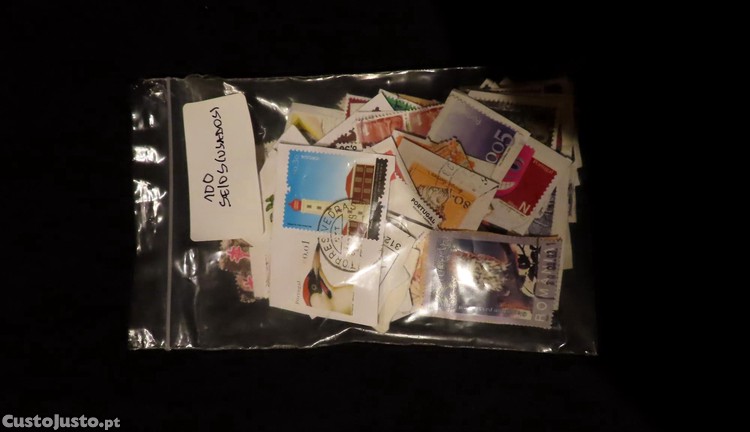 Lote de 100 Selos sortidos usados sobre suporte de papel de envelope.