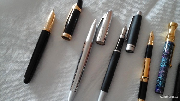 Lote de 11 canetas de coleção estilo vintage e outras modernas, todas de aparo em metal para tinta permanente com depósito de tinta todas têm carga para por a tinta. Nunca foram usadas.Só vendo o conjunto.