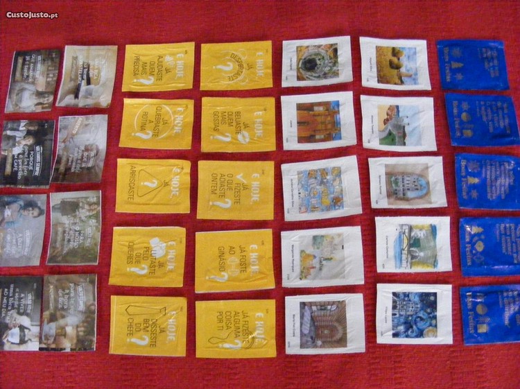 Lote de 210 pacotes de açúcar vazios, portugueses, todos diferentes. Tem várias séries completas e outros. Entrego pessoalmente ou envio pelos CTT.
