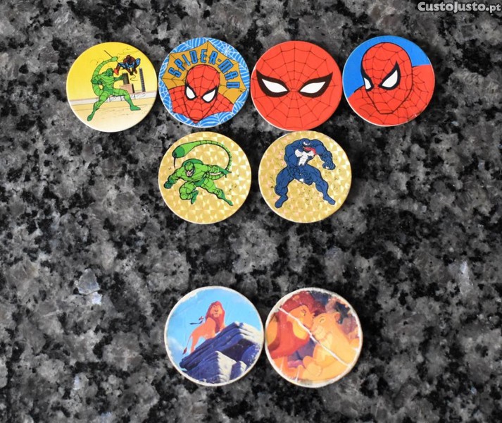 O valor apresentado é para todo o lote Power Rangers - 5 un Wiggins - 1 un Casper Caps - 1 un DC Comics - 1 un Rei Leão - 2 un Donettes - 1 un Sonic Cap mexe mexe - 8 un (n 13 repetido) Chocapic POG - 4 un Spider-Man Caps - 4 un Spider-Man Laser Caps - 2 un Tazo Tiny Toon - 3 un (n 13 repetido) World Tazo - 4 un Mega Tazo Taz Mania - 2 un Tri Tazo Chester - 1 un Sport Tazo - 2 un