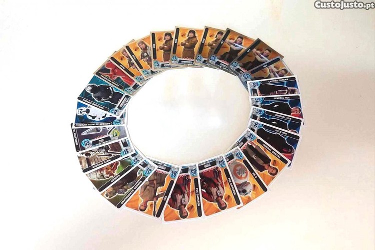Preço: 7 €Lote de 54 cromos e 3 bustz da coleção da Star Wars