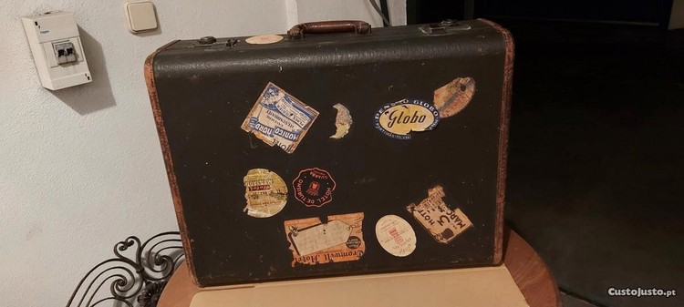 Mala Preta de viagem antiga com publicidade