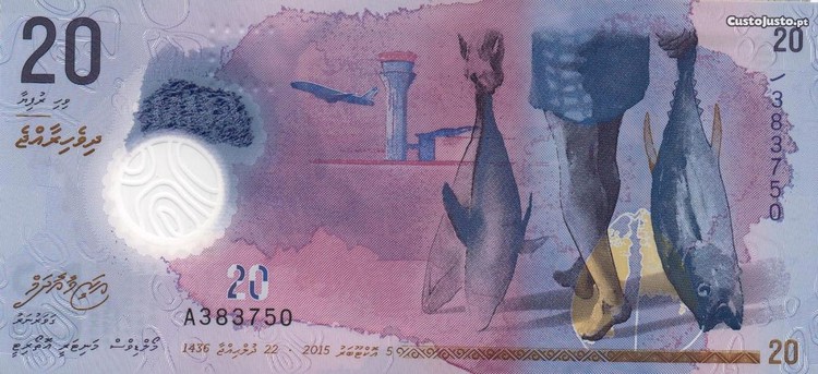 Maldivas - Nota de 20 Rufiyaa 2015 - nova plástico