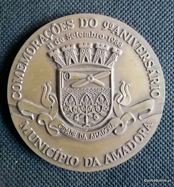 Preço: 5 €Medalha medalhão em metal com gravação Municipio Amadora Comemorativa 9 Aniversário em 1988