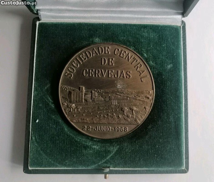 Preço: 28 €Medalha medalhão estojo original Central Cervejas Inauguração fábrica Vialonga 22 Junho 1968