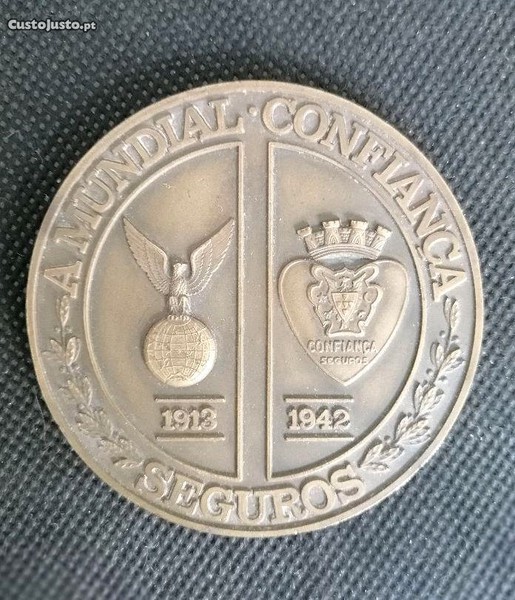 Preço: 13 €Medalha medalhão metal com gravação A MUNDIAL . CONFIANÇA SEGUROS e Mundial Confiança 1979