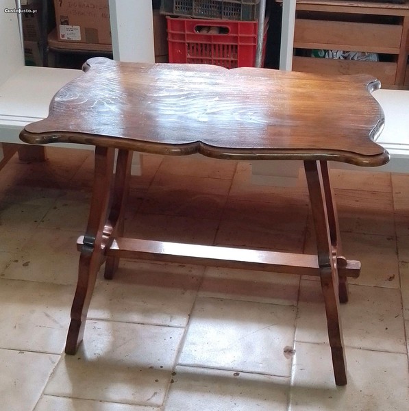 Mesinha de centro antiga de modelo rústico, feita em madeira de castanheiro maciça. Obra provinciana de trabalho artesanal e tradicional de marcenaria dos anos 40/50. Mede 65 x 45 x 52 cm e está em bom estado. Peça muito interessante e rara. Barato para desocupar. Negociável, vendo pela melhor oferta.