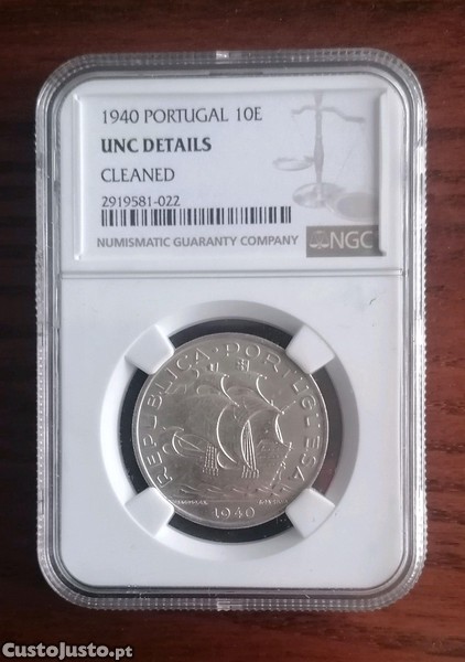 Preço: 47 €Moeda de 10 escudos 1940 certificada