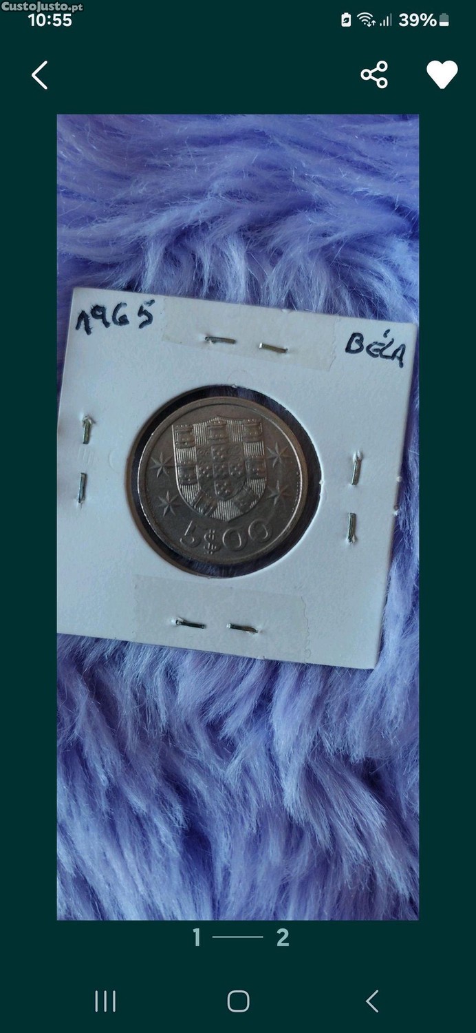 moeda de 5 escudos de 1965, em estado bela, há poucas em estado belo, em cupro-niquel , posso enviar por correio verde normal, custo de 1,5.