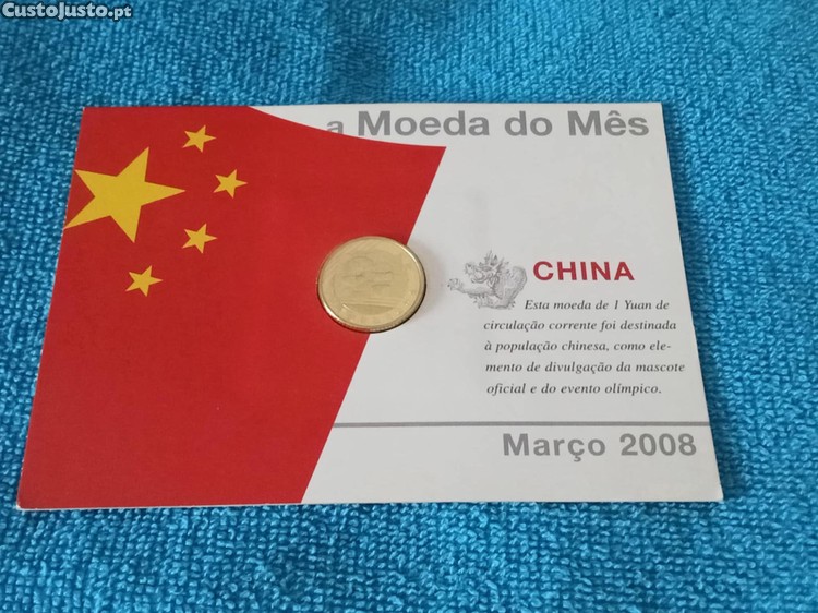 Carteira com moeda de 1 Yuan comemorativa com a mascote oficial Ténis de mesa