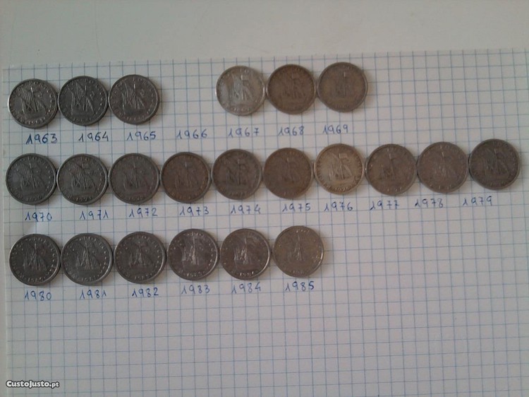 Moedas 2,5 escudos 1963/85 falta 1966 para o conjunto completo .