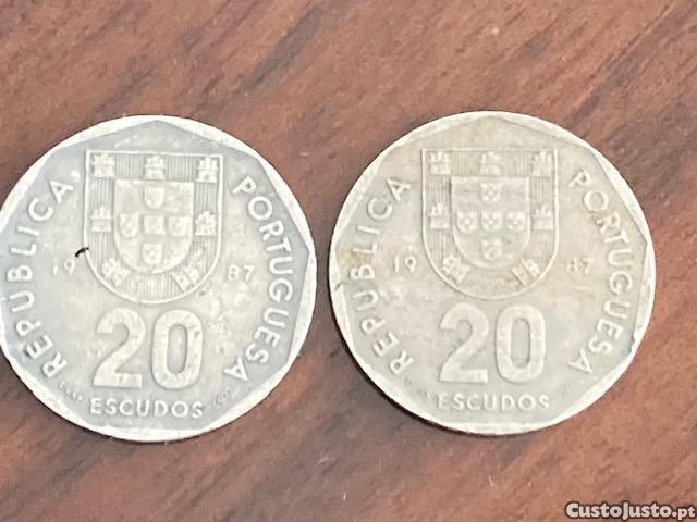 Moedas de 20 escudos (20$00), cuproníquel, entre 1987 e 1999