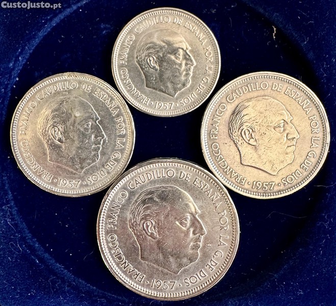 Preço: 4 €Moedas de 5, 25 e 50 pesetas 1957