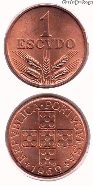 Moedas Portuguesas, 1 Escvdo, 1969 a 1979, em bronze, várias unidades de cada data: