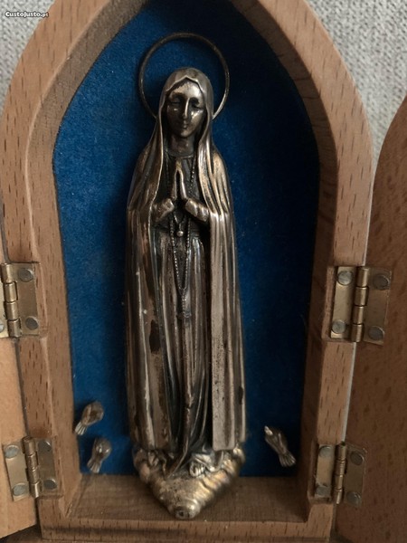 Nossa sra de Fátima em prata com 10 cm de altura caixa com 14X6,5X4