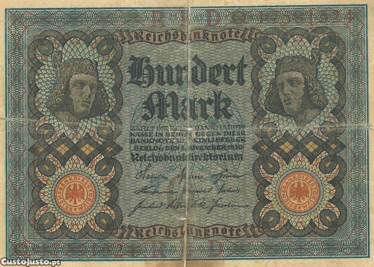 Preço: 12 €Nota bancária 100 marcos de 1940