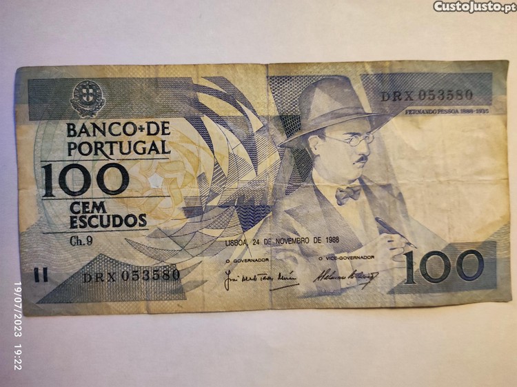 Preço: 4 €Nota de 100 Escudos de 1988, Circulada, chapa 9