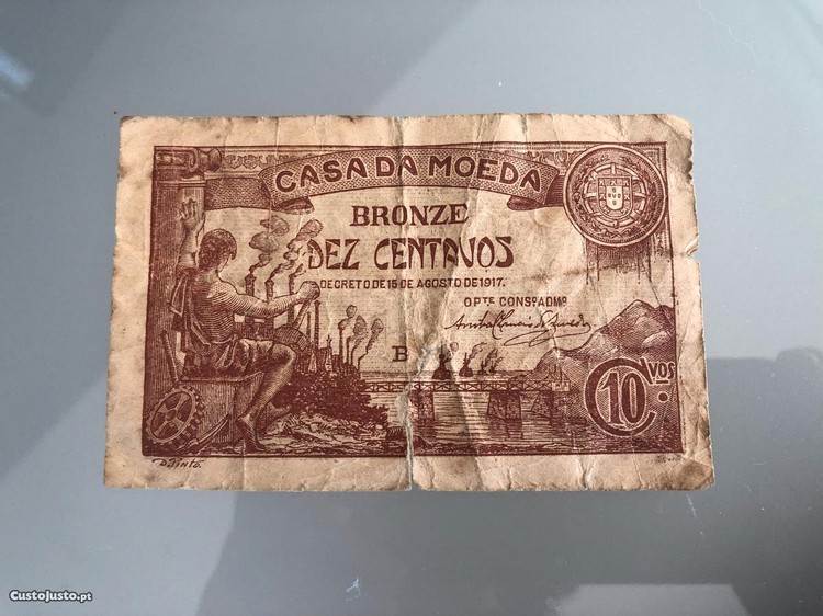 Preço: 65 €Nota de Dez Centavos 1917