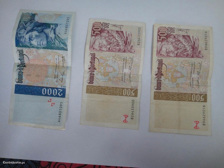 Tenho pra venda estas 3 notas portuguesas , uma de 2.000 escudos 15EUR e duas de 500 escudos 5EUR cada , todas 20EUR , tambem poço vender há unidade qualquer duvida disponho .