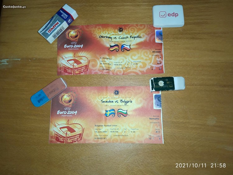 Preço: 14 €pack 2x bilhetes Euro 2004 Suécia vs Bulgária & Alemanha vs Républica Checa