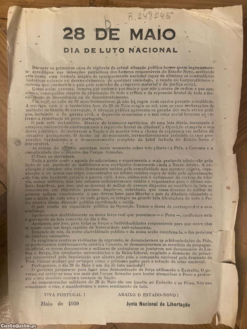 Preço: 50 €Panfleto 28 de Maio Dia de Luto Nacional: Maio 1959 - JNL