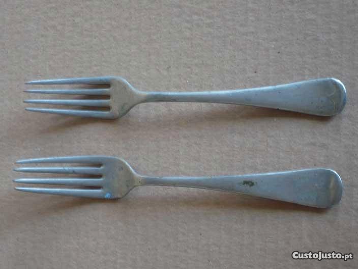 Par de garfos antigos de casquinha de fabrico inglês. Estão estimados, podem completar um faqueiro ou valerem só como peças individuais. Barato para desocupar. Negociável, vendo pela melhor oferta.