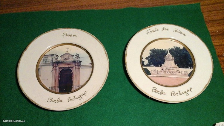 Par de pratos de Borba um com a Fonte das Bicas outro com os Passos, em estado impecável. diam 16 cm