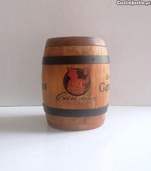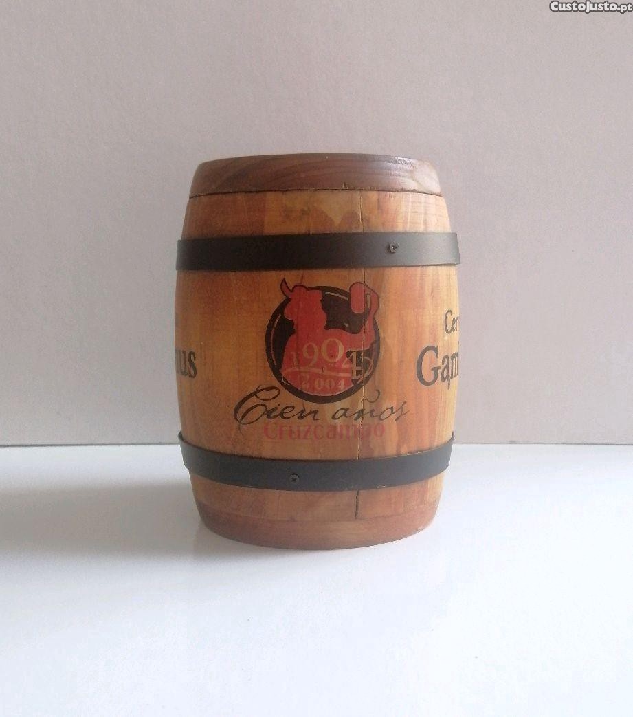 Pequeno barril madeira alusivo Centenário cerveja Cruzcampo 1904 - 2004 com 6 bases no interior