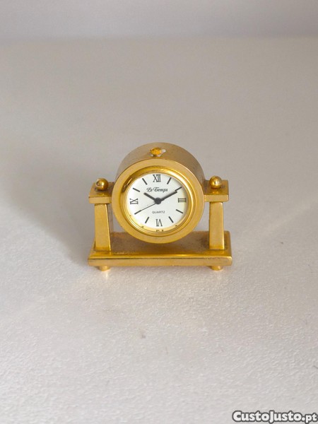 Pequeno relógio de mesa em metal, ideal para colecionadores ou para completar uma decoração de um escritório ou sala. Entrego em mãos em Lisboa, Sacavém, São João da Talha, Ericeira ou Mafra. Custos de envio a cargo do comprador.
