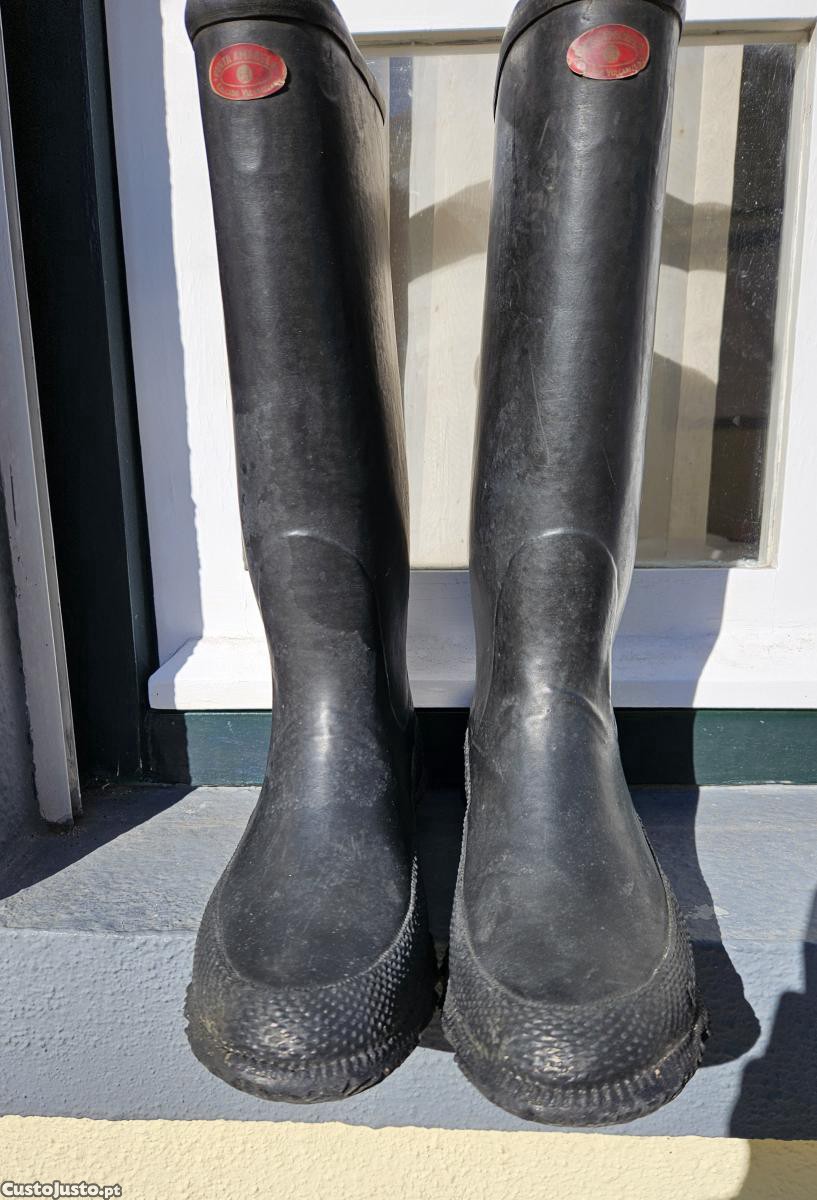 Material de proteção contra a chuva , Botas de Borracha N. 41 . Fato de Oleado C / capuz e botas altas ( Macacão ) .